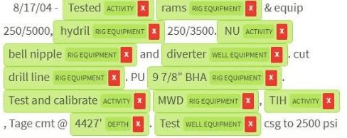 WellLine 提供了「用于油井优化的 AI 驱动的油井时间线」,并且也是 LightTags 最早的客户之一。他们的一部分成果是将自然语言处理技术应用于人类书写的每个油井的生产日志。