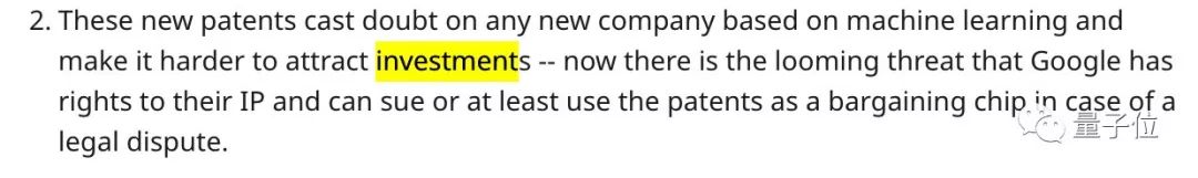 这样的专利,对任何年轻的机器学习公司都会有影响,让他们更难吸引到投资——现在谷歌对许多算法已经有知识产权了,(如果使用专利代码) 随时可能被起诉。