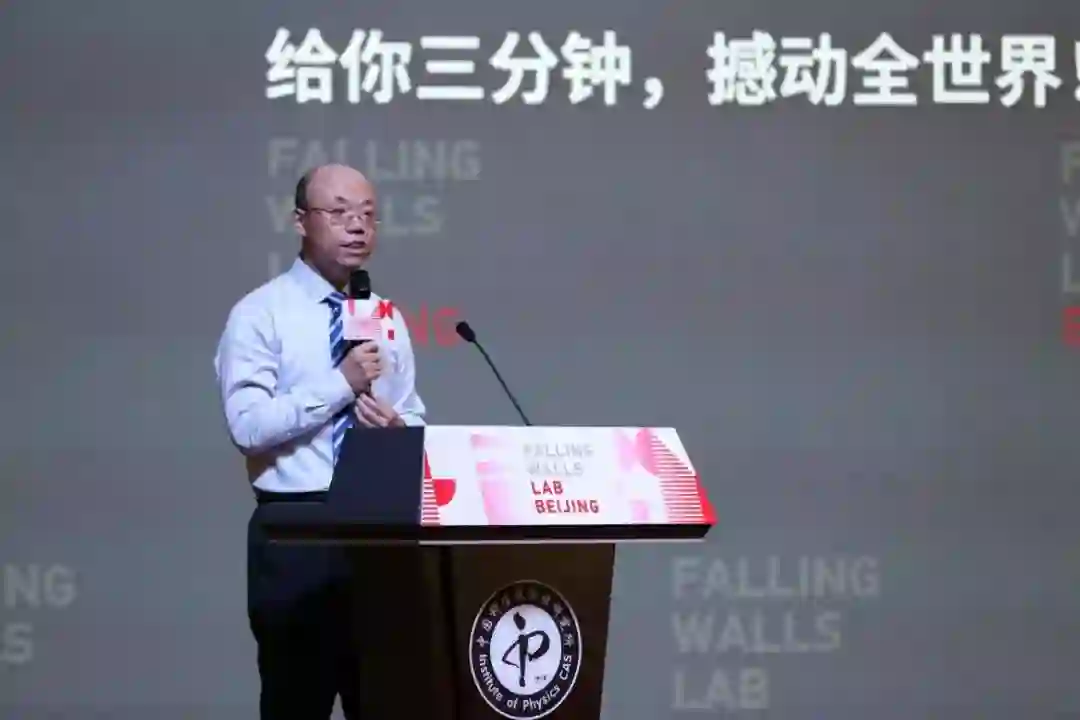 下午2点,比赛正式开始。中科院物理所所长助理魏红祥代表主办方致开场辞,他表示,希望通过这次与Falling Walls Foundation的合作,让物理所的科普工作做到请进来、走出去,并预祝本次比赛圆满举办。随后,中科院青年创新促进会秘书长何潇、德国亥姆霍兹联合会北京代表处首席代表何宏、羚锐制药股份有限公司副总经理武惠斌先后致辞。