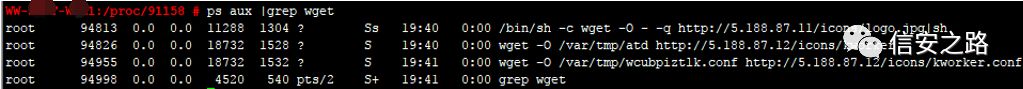 到这里,我们可以发现攻击者下载 logo.jpg 并执行了里面了 shell 脚本,那这个脚本是如何启动的呢?