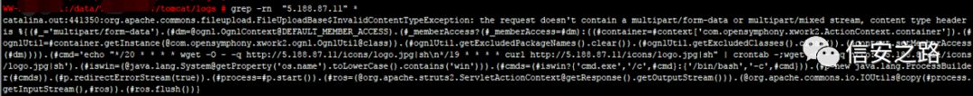 可以发现攻击代码中的操作与定时任务中异常脚本一致,据此推断黑客通过 Struct 远程命令执行漏洞向服务器定时任务中写入恶意脚本并执行。