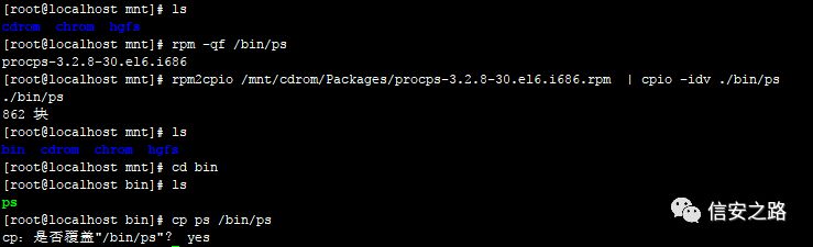 把 ls 命令复制到 /bin/ 目录 修复文件丢失: