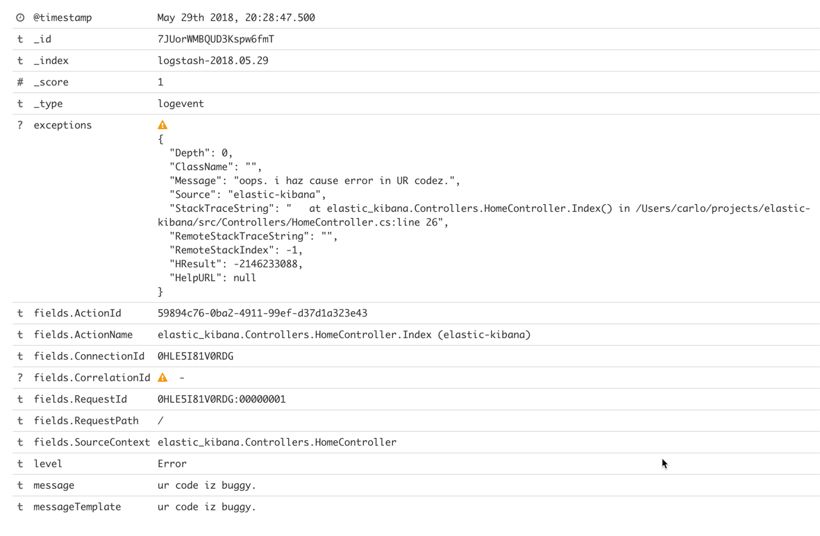 我们来看看使用 Serilog 和 ElasticSearch 默认记录的详细信息。