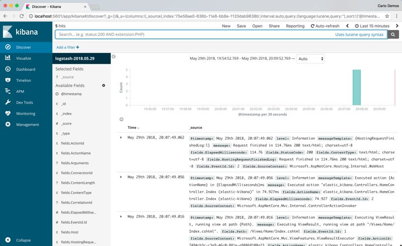 源代码 : https://github.com/thecarlo/elastic-kibana-netcore-serilog