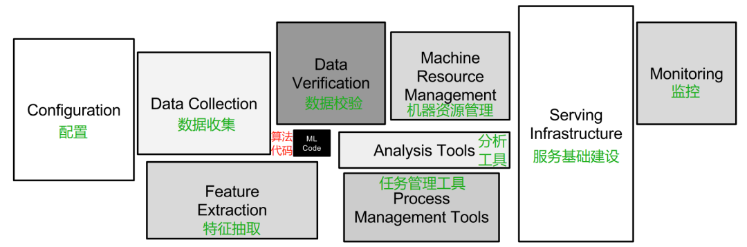 在大多数时候,建模过程中的很多技巧都是在实践中踩坑、摸索得到的,很难在教科书上找到答案。而且,还有一个很容易被忽视的地方在于,在整个推荐系统中,为了实现算法落地,算法代码只占据了很小很小的一部分。