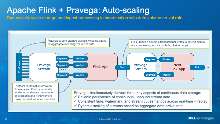 也就是在 Pulsar 开发的同时,戴尔科技集团的研发团队发现做一个更好的消息队列 /Kafka 并不能解决新一代大数据平台在数据存储层上的挑战,因此他们重新思考了数据处理和存储的规则,设计并开源了全新流存储”Pravega”项目(https://github.com/pravega)。通过一个全新的“stream”存储抽象层,Pravega 让上层计算引擎能更好和无缝去跟底层存储解耦:“所有计算机领域的问题,都可以通过增加一个额外的中间层抽象解决”。
