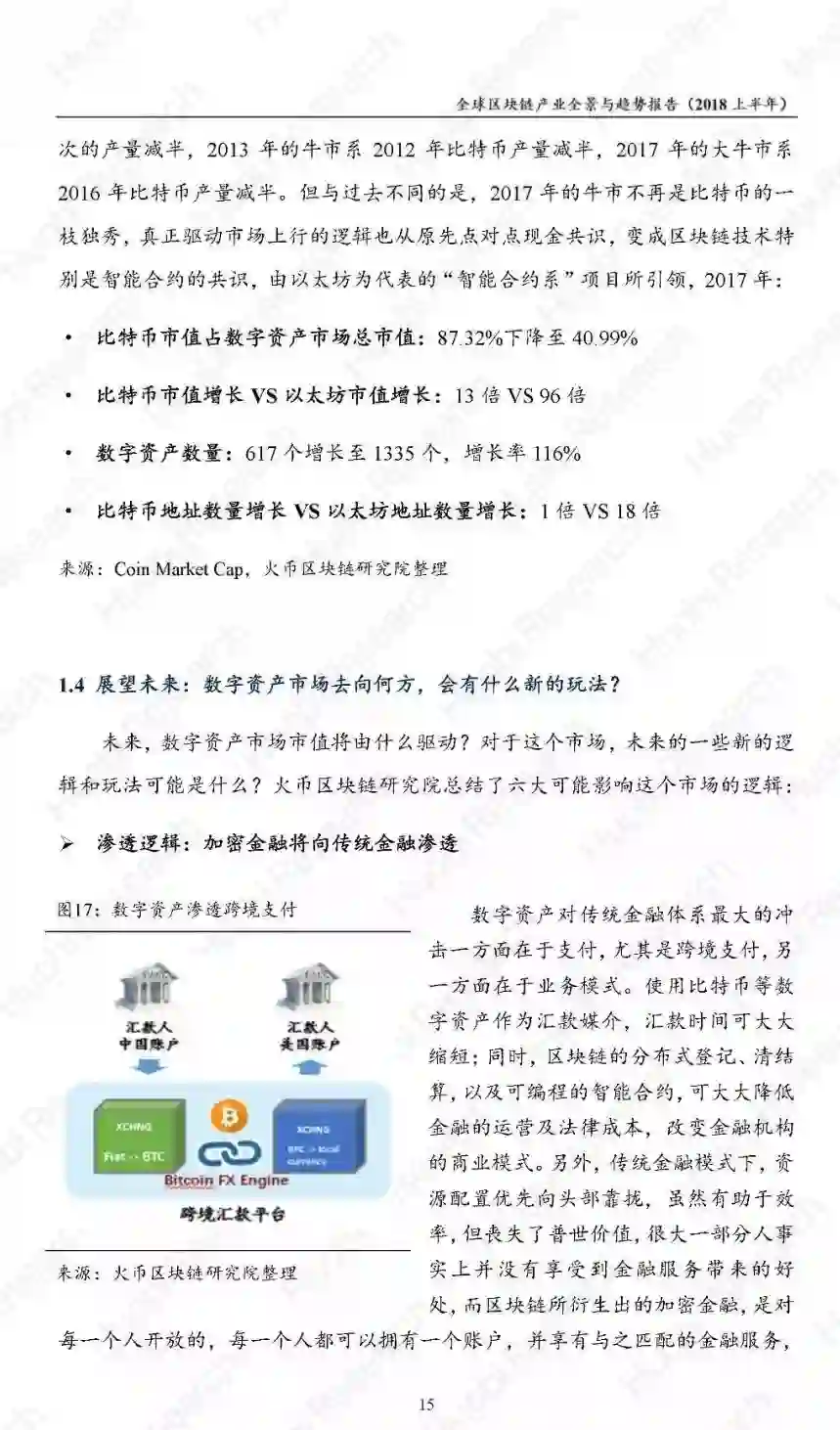 《报告》表示,2017年数字资产市场经历了自比特币问世以来的第三次牛市,这次牛市不再是比特币一枝独秀,而是“智能合约系”数字资产百花齐放,代表了数字资产行业从点对点现金的共识到智能合约共识的进步。