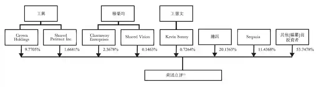 而在备受瞩目的股权结构方面,在最新披露的股权架构图中我们可以看到,一直被视为“不站队”典型的美团,第一大股东目前却是腾讯,其持股比例为20.14%。而王兴目前持股共计11.4386%,仅是公司的第二大股东。