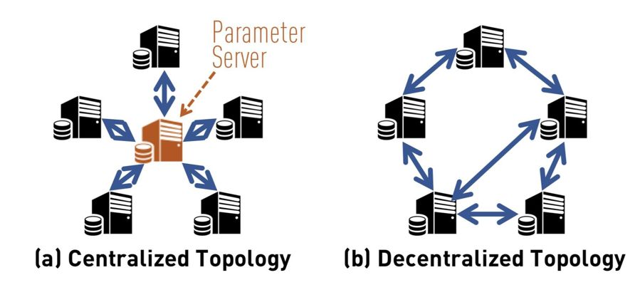在通常的同步或者异步 SGD 中,参数服务器的通讯代价容易过高。因为所有工作站的梯度信息都要发给它,它的当前参数也要不停地发送给工作站,所以参数服务器的带宽也就成为了分布训练的瓶颈。刘霁教授表示:「去中心化的分布式计算,主要优势在于通信上带来的提升,特别是在模型非常大或网络带宽不够好的时候。总体而言,去中心化的总计算复杂度和通讯代价并不高于中心化策略,且总通讯成本可以平均分配给各计算节点而提升效率。」