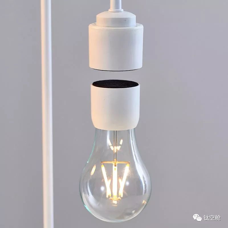 它采用磁悬浮技术原理,在类似灯口的底座内置磁铁,同时在专属灯泡内装上感应线圈,可与磁铁相互吸附,并且可以无线传输电力。