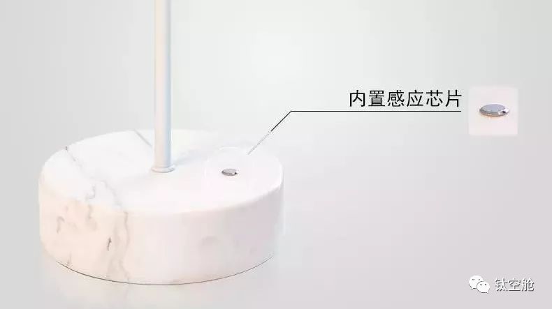 大理石底座上设置有触摸式感应开关,轻触即可开关灯。