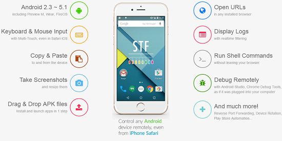 STF(or Smartphone Test Farm) 是一个 Web 应用程序,用于从舒适的浏览器远程调试智能手机,智能手表和其他小工具。