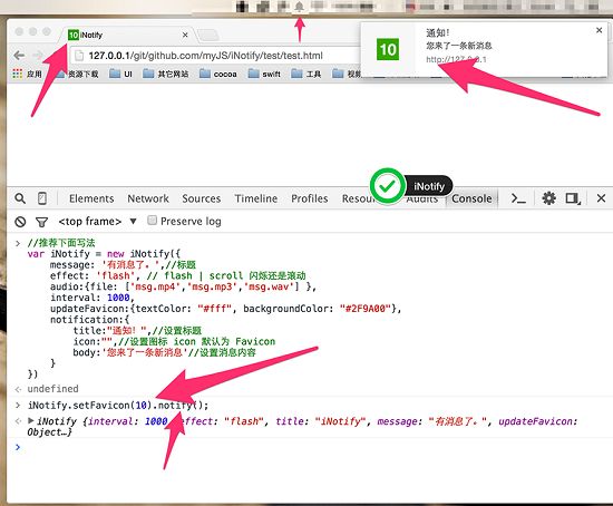 JavaScript 实现浏览器的 title 闪烁、滚动、声音提示、chrome、Firefox、Safari 等系统通知。