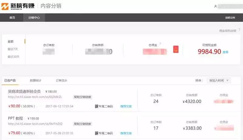 1. 注册新榜网站用户,在付费内容分销平台首页领取分销链接