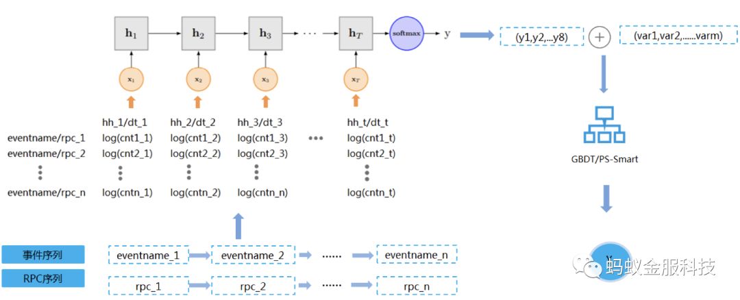 基于这些行为序列,我们可以通过特征工程来刻画变量,加入到现有模型中,也可以直接基于深度学习来自动学习刻画这些变量。因此我们引入了基于操作、支付以及浏览行为的事件序列,采用LSTM模型结构深入刻画主动方(账户)以及被动方(账户/卡Bin)的异常行为链,以提升整体的欺诈风险识别能力。