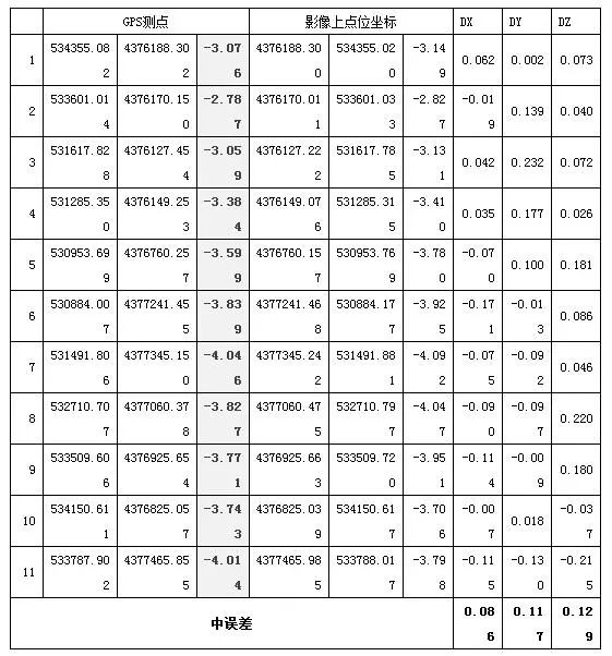 利用DP-Smart进行空三解算及自动化建模后,在模型上量测检查点坐标信息,对比精度如下: