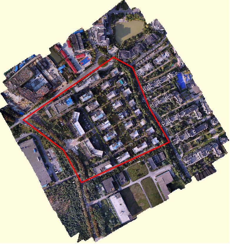 1.5cm分辨率影像测试方案是:在测试范围内,间隔100米左右布设一个像控点,空三解算后进行自动化建模。在模型上量测检查点坐标信息,通过检查点的中误差,判断模型精度是否能满足地籍测量精度要求(平面位置中误差5cm)。