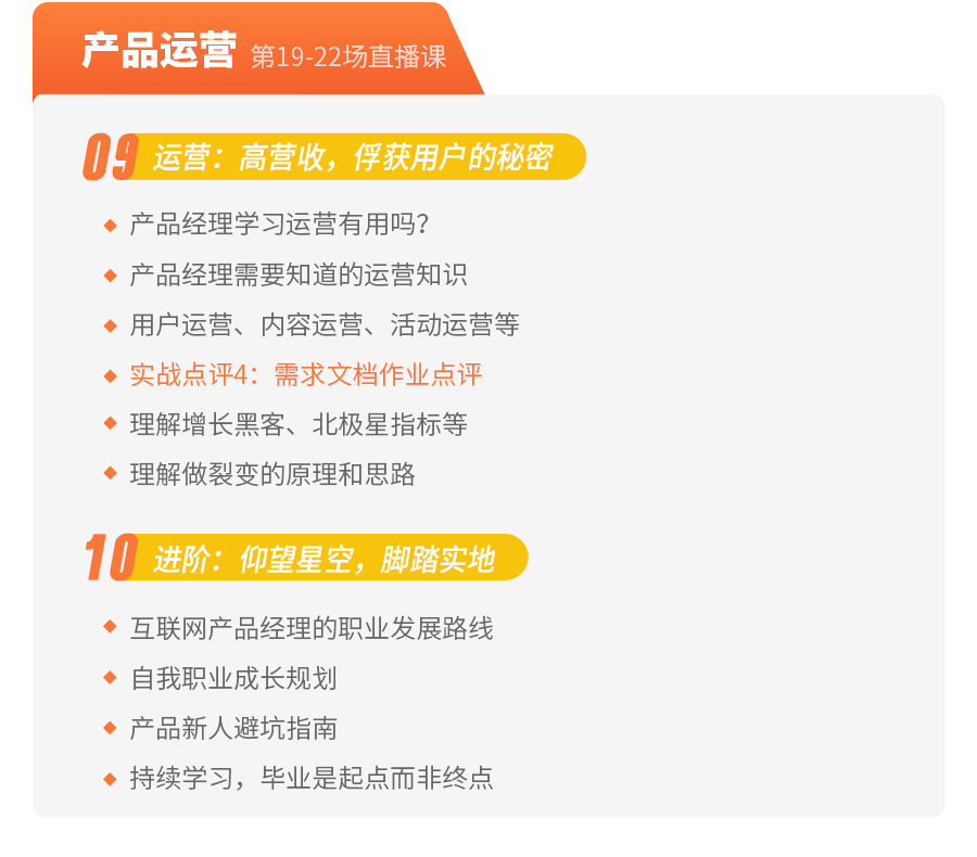 这门课程结合了大厂产品经理成长体系以及产品经理实际技能应用,系统地覆盖了产品知识核心6大板块,供大家体系化的学习参考。
