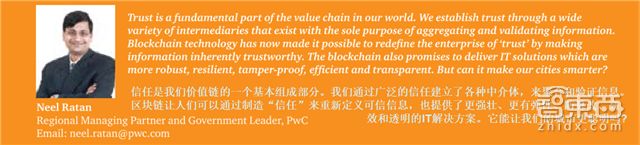 本期的智能内参,我们推荐来自普华永道(印度)的区块链报告,剖析区块链的概念本质和工作原理,从健康、教育、公共安全、农业、民事登记 、国防、政务、能源8大领域出发,盘点区块链的智慧城市应用。如果想收藏本文的报告全文(普华永道- Blockchain: The next innovation to make our cities smarter ),可以在智东西(公众号:zhidxcom)回复关键词“nc223”下载。