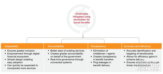 ▲区块链缓解社会问题(适应性、问责制、透明度、效率)