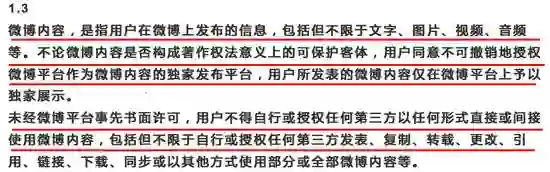 针对此前网友热议的《微博用户服务使用协议》中,未经微博平台事先书面许可,用户不得自行或授权任何第三方以任何形式直接或者间接使用微博内容,今日下午,微博管理员发布《微博用户内容版权权益释疑》的消息。释疑中指出,版权或者说著作权理所应当是属于内容创作者所有的,微博作为发布平台只享有一定范围的使用权。同时表示,用户可以将自己具有完全权利的作品,根据自己的意愿发布到其他平台;但未经微博平台同意,自行授权、允许、协助第三方非法抓取已发布的微博内容,不被允许。