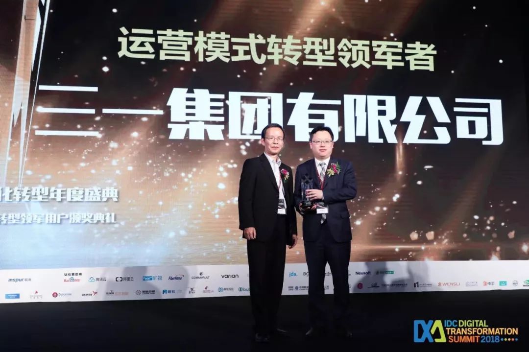 ▲图为三一集团有限公司副总经理兼集团首席信息官潘睿刚先生(右)代表三一集团领奖