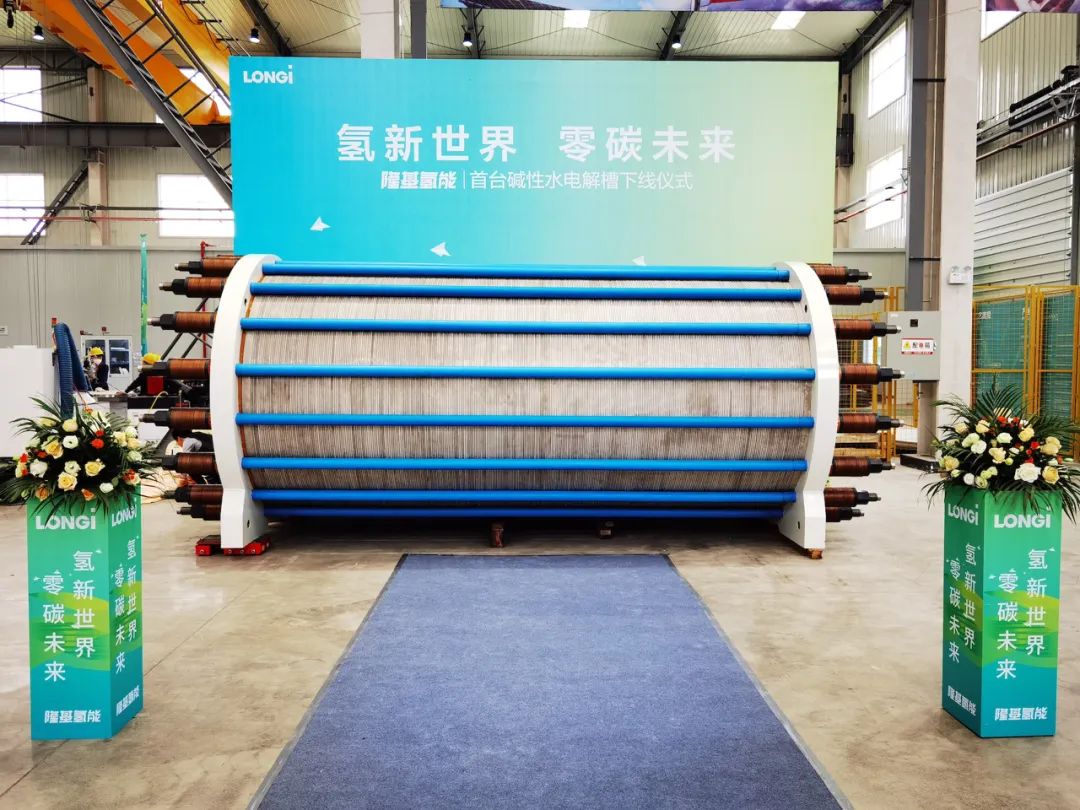 隆基下线首台碱性水电解槽。图片来源:隆基氢能