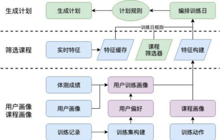 目前,智能训练计划功能已经可以通过对用户运动能力的预测,包括用户主观的“自我评估”和客观的“运动能力测试”,结合智能算法针对性地给用户推导计算出适合他的运动方案。而且其课程自动生成系统也能够自动地从动作生成一个课程,并根据动作的性别、难度、肌肉点、姿态、容量、休息时长等特征,制定了一系列的课程生成规则,通过规则生成、筛选出符合逻辑的训练课程。