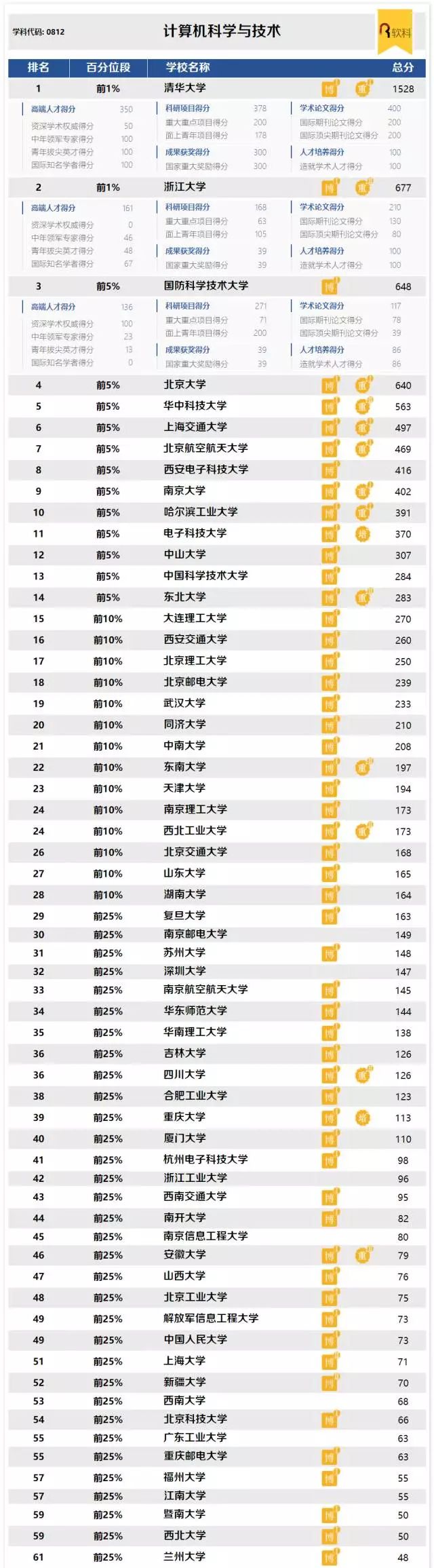 不同学科的学科点基数不同,因此竞争的激烈程度也不一样。有的热门学科如计算机科学与技术、工商管理等,参加排名的高校在300个左右,而像特种医学、大气科学这样的小众学科,设置的高校数都不超过20个。为此,中国最好学科排名引入了百分位段的概念,在绝对数排名以外还给出了每个学科点在本学科所处的相对位置。