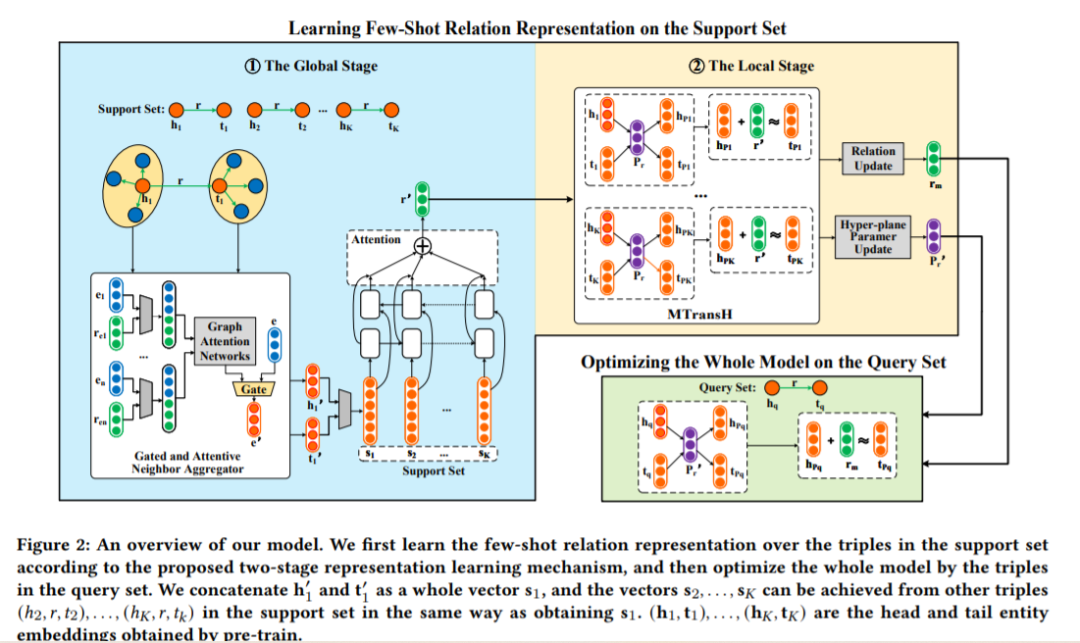 为了扩大知识图谱中少样本关系的覆盖范围,近年来少样本知识图谱补全(FKGC)得到了越来越多的研究兴趣。现有的模型利用了一种多跳关系的邻居信息来增强其语义表示。但是,当邻域过于稀疏,没有邻域来表示少射关系时,噪声邻域信息可能会被放大。此外,以往的知识图谱补全方法对多对多(1-N)、多对一(N-1)、多对多(N-N)等复杂关系进行建模和推断需要较高的模型复杂度和大量的训练实例。因此,由于训练实例有限,FKGC模型很难在少样本场景下推断复杂关系。本文提出了一种全局-局部框架下的少样本关系学习方法来解决上述问题。在全局阶段,构建了一种新颖的门控和专注邻居聚合器,用于精确集成几个样本关系的邻域的语义,这有助于过滤噪声邻域,即使一个KG包含非常稀疏的邻域。对于局部阶段,我们设计了一种基于元学习的TransH (MTransH)方法来建模复杂关系,并以少量学习的方式训练模型。大量实验表明,我们的模型在常用的基准数据集NELL-One和Wiki-One上的性能优于先进的FKGC方法。与强基线模型MetaR相比,我们的模型通过度量Hits@10在NELL-One上实现了8.0%的5次FKGC性能改进,在Wiki-One上实现了2.8%