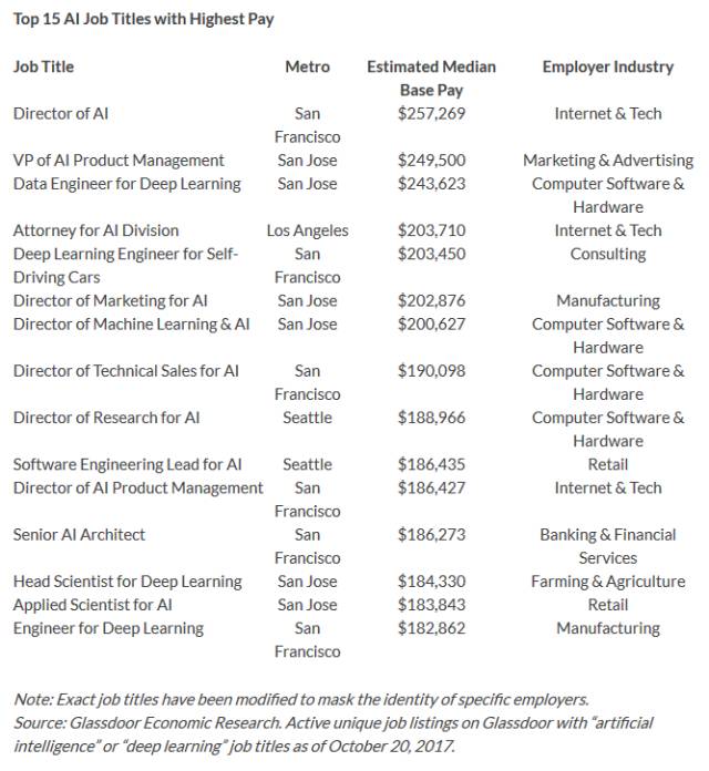 Glassdoor 上列出的 AI 职位,基本年薪平均在 11.1118 万美元。