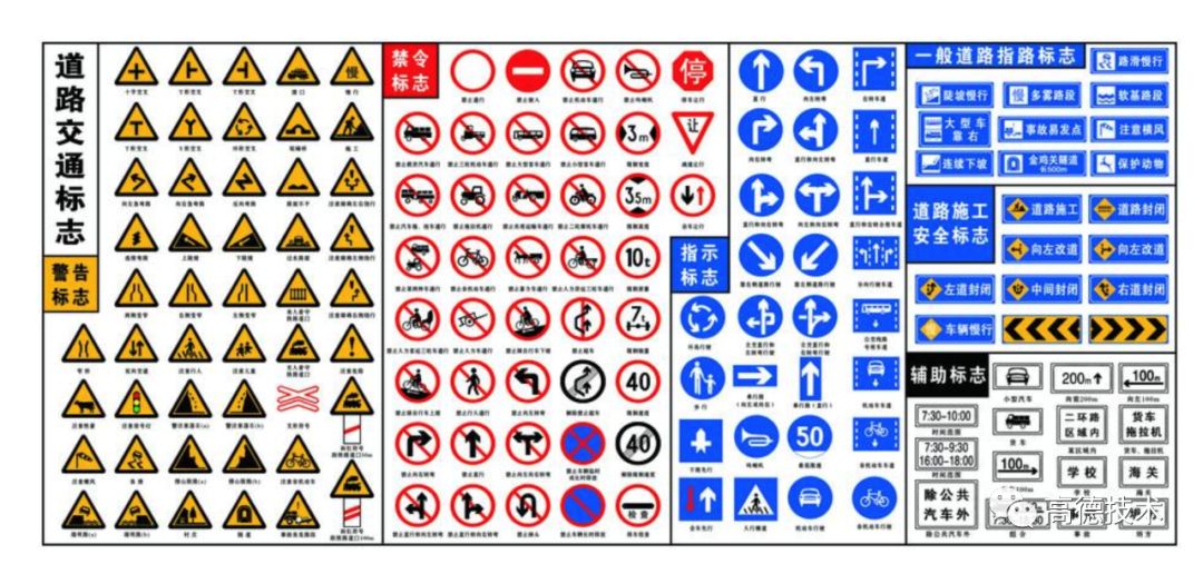 形状多样:常见交通标志的形状有三角形、圆形、方形、菱形、八边形等,还有地面标线、电子眼、信号灯,以及限高杆、栅栏等物理设施;