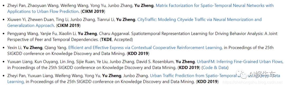 郑宇。JD的副总裁。主要研究时空序列数据挖掘,空间维度为主,并且用在traffic flow上的应用。主页:http://urban-computing.com/yuzheng 来感受一下大佬2019年的一点小工作。(看了这个,感觉我太难了)