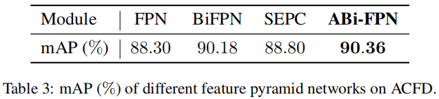 然后,给出了ResNet50作为骨干网络时不同Head的性能,ABi-FPN获胜。