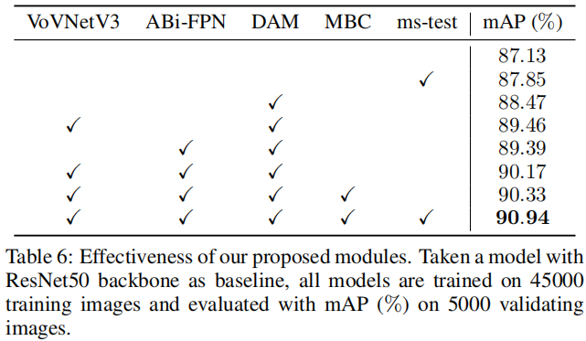 该文最核心的创新可能是DAM与MBC两块,而VoVNetV3则是VoVNetV2与ACNet的组合,ABi-FPN则是Bi-FPN与ACNet的组合。但不管怎么说,能夺冠的方法就是好方法。