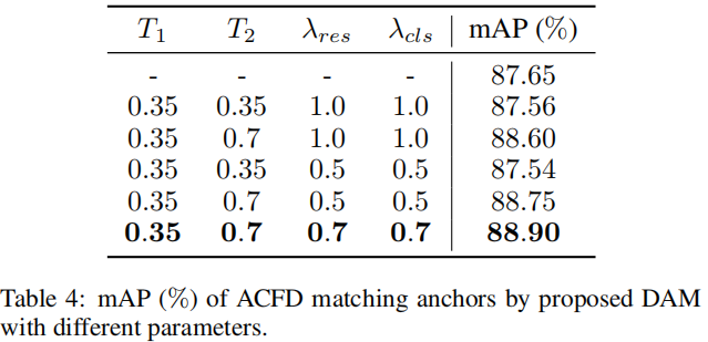 其他超参数,动态锚点匹配参数 ,加权系数为 ,分类损失中的边界参数为0.2.