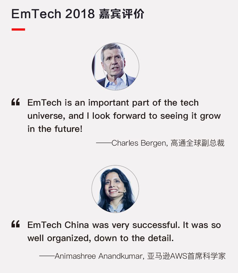 EmTech China 2018 全球新兴科技峰会的成功举办,最终让我们将这一在全球范围内有着近 20 年历史的著名科技会议品牌顺利落地中国,为关心最前沿科技发展趋势的中国观众提供了近距离接触全球“最强科技大脑”的绝佳机遇。