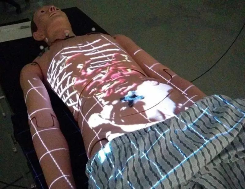 该系统可以将CT扫描和MRI数据等医学图像直接显示在患者身体上,并与患者相应部位相对应,通过软件定位实现让图像可以随患者移动而同步移动。这样可以让医生全面了解患者的内部解剖结构,直观地看到骨骼和各部位器官。