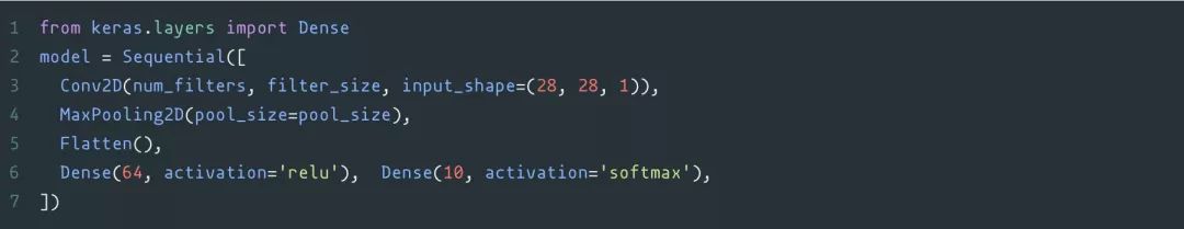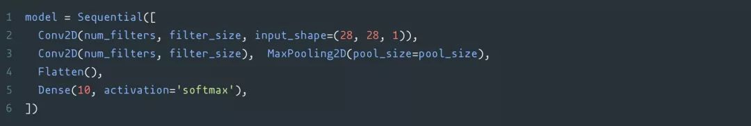 Sequential 构造函数接受一个 Keras Layers 数组。我们将为 CNN 使用三种类型的层:卷积层、最大池层和 Softmax 层。