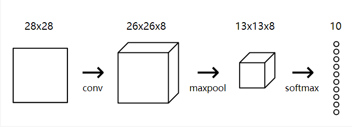 MNIST 数据集中的每个图像都是 28x28,包含一个居中的灰度数字。我们的 CNN 将获取一个图像并输出 10 个可能的类中的一个(每个数字一个)。