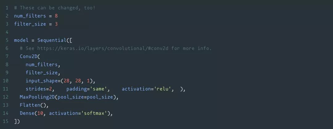 num_filters, filter_size 和 pool_size 是设置 CNN 超参数的自解释变量。