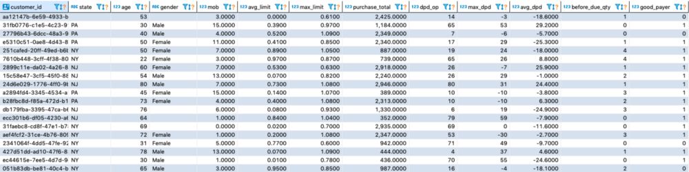 创建的分析数据库示例,用于提供预测客户违约的行为评分模型。