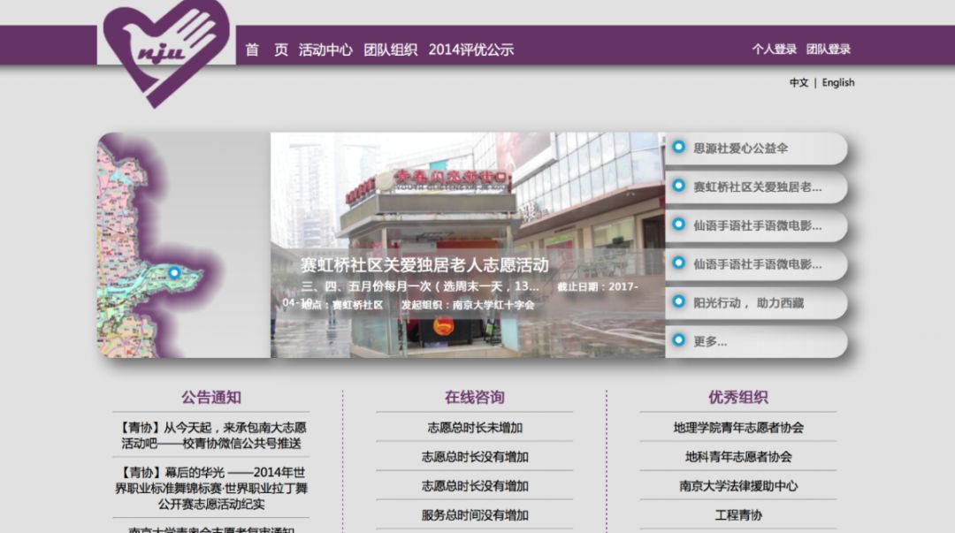 南京大学青年志愿者协会成立于1995年,协会以“服务校园和社区,奉献爱心与真诚”为宗旨,以“顺利开展青年志愿者活动、推动青年志愿者活动、推动青年志愿者事业的发展”为工作中心,活跃于校园和社会大舞台之上。
