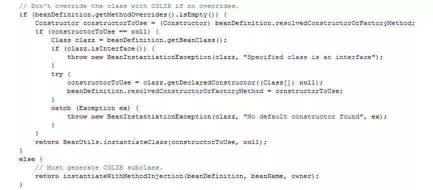 public interface AdvisorAdapter { boolean supportsAdvice(Advice advice); MethodInterceptor getInterceptor(Advisor advisor); } MethodBeforeAdviceAdapter类,Adapter class MethodBeforeAdviceAdapter implements AdvisorAdapter, Serializable { public boolean supportsAdvice(Advice advice) { return (advice instanceof MethodBeforeAdvice); } public MethodInterceptor getInterceptor(Advisor advisor) { MethodBeforeAdvice advice = (MethodBeforeAdvice) advisor.getAdvice(); return new MethodBeforeAdviceInterceptor(advice); } }