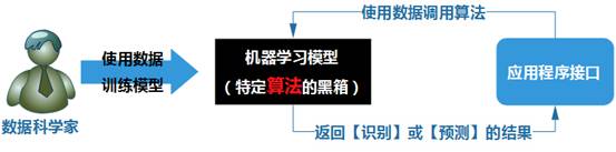 这个模型已经不再是由【软件攻城狮同学】来完成编写了,而是由数据科学家通过给机器学习模型喂养数据,而自行形成的一套程序,具体过程为: