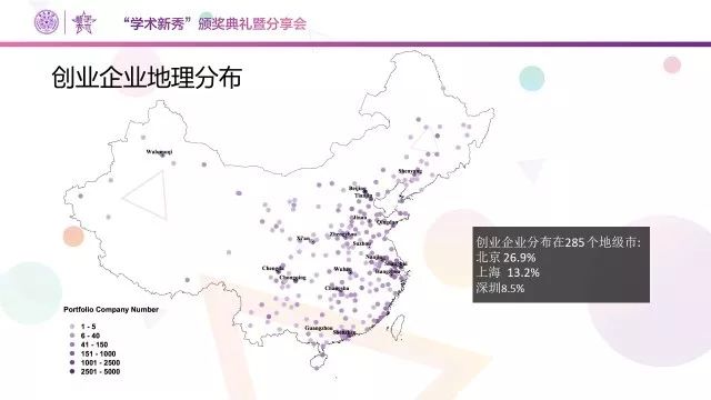 这张图展示了创业企业的地理分布,可以看到,分布还是非常广泛的。