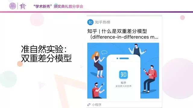 什么是准自然实验法呢?在座的有很多理工科的同学,实验法的原理想必大家比我更清楚。高速铁路之所以是一个很好的研究情境,是因为铁路网络是阶段性开通的。更精确的办法是把所以样本在通路前都作为控制组,在通路后都作为实验组,也就是cohort differences-in-difference, 组合条件下的双重差分。