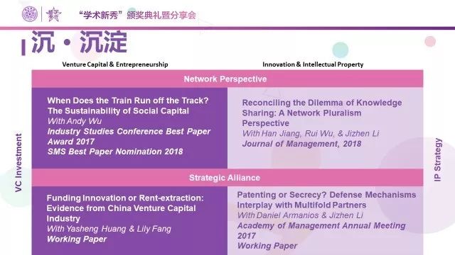 其实这篇博士论文还没有被发表,我在三年级以后写的论文都还没发表。目前只有一年级和两年级的学期论文发表了,其他都还是工作论文。一开始我提到的那篇被JOM拒了的一年级学期论文,后来辗转投了另外一个期刊,也是我们领域的A类期刊。我想我可能是今天所有学术新秀提名者里发表论文最少的一个了。