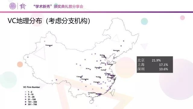 相对而言,创业投资企业的分布就比较集中,半数以上的风险投资人集中在北京、上海、深圳。