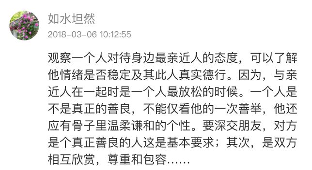 值得深交的人,无谓年龄、性别、阶层,但他们一定有根植于内心的人品,无需提醒的道德自觉,对人对事流露出的教养,以及对这段友谊的尊重。